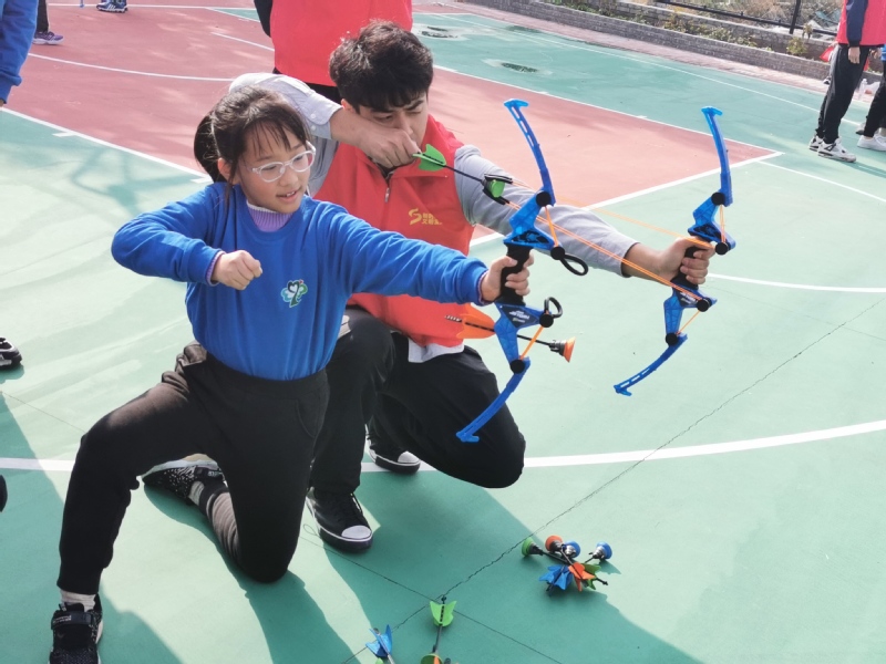 活动的第二站来到了八字桥读书台,哥哥姐姐与孩子们分成6小组结对开展了充满童真的游戏活动。投沙包、射箭、抬水杯、划旱船,大朋友与小朋友在游戏中彼此熟悉,齐心协力,互相激励,完成了一个个趣味游戏,感受着欢乐时光的温暖与快乐。