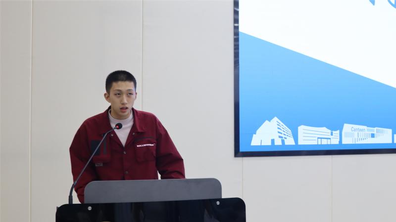 “努力成为具有‘红色基因、蓝色梦想’使命担当的创新型人才”,钟成同学从他与单校长的交流讲起,分享了他志在长空的初心,他表示将秉承“智周万物,道济天下”的校训,以一往无前的奋斗姿态为民航强国事业贡献青春力量。