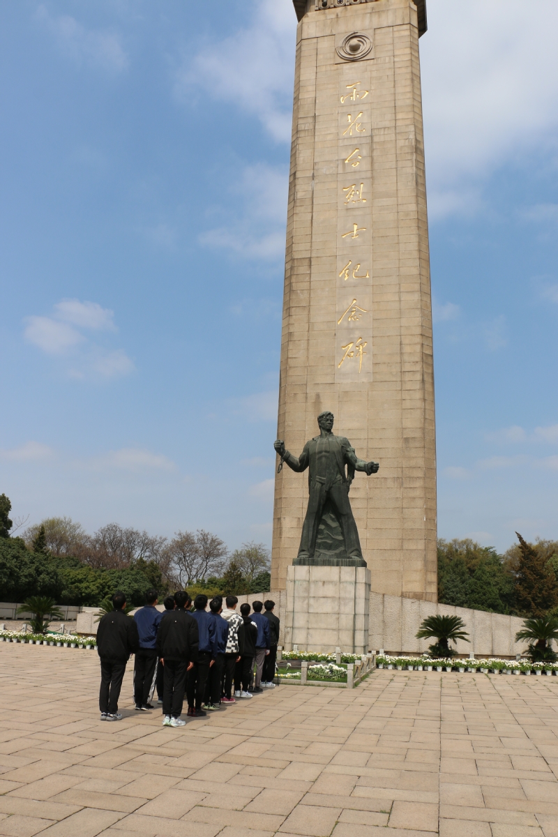 进入雨花台烈士陵园,首先映入眼帘的是雨花台烈士就义群雕,战士神情端庄令人震撼。一路向前,同学们来到雨花台烈士纪念碑前,全体肃立,为革命烈士默哀,以表深深的崇敬之情。