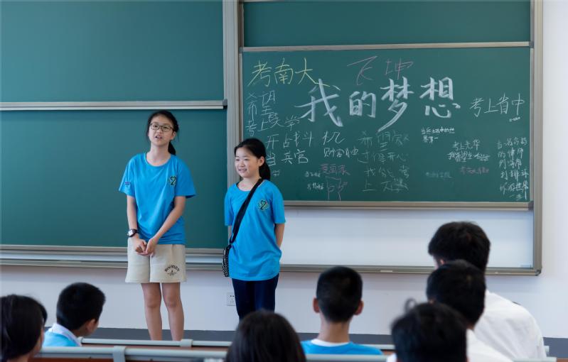 午餐过后,一场主题为“我的梦想”的主题班会在巡天楼317教室进行。孩子们一一上台讲述了自己的梦想,“考上好大学”、“当飞行员”、“开战斗机”、“当特种兵”、“当乒坛中的世界第一”、“环游世界”、“希望家人过得开心”......质朴而闪亮的梦想,是孩子们对未来美好的期待。