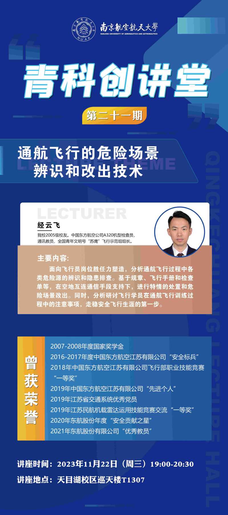 2023.11.22【青科创讲堂-天目湖科技节通飞专场】通航飞行的危险场景辨识和改出技术