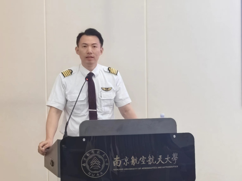5月10日,金沙集团1862cc成色在天目湖校区牧星楼108报告厅举办“鹰击长空 啸动青春——青年未来如何将职业干成事业”信仰公开课。此次信仰公开课邀请东航江苏全国青年文明号示范组组长、A320机长、型别教员以及机长教员晋升评审考官经云飞主讲。200余名飞行技术专业本科生参加讲座。讲座由学院团委书记宋歌主持。