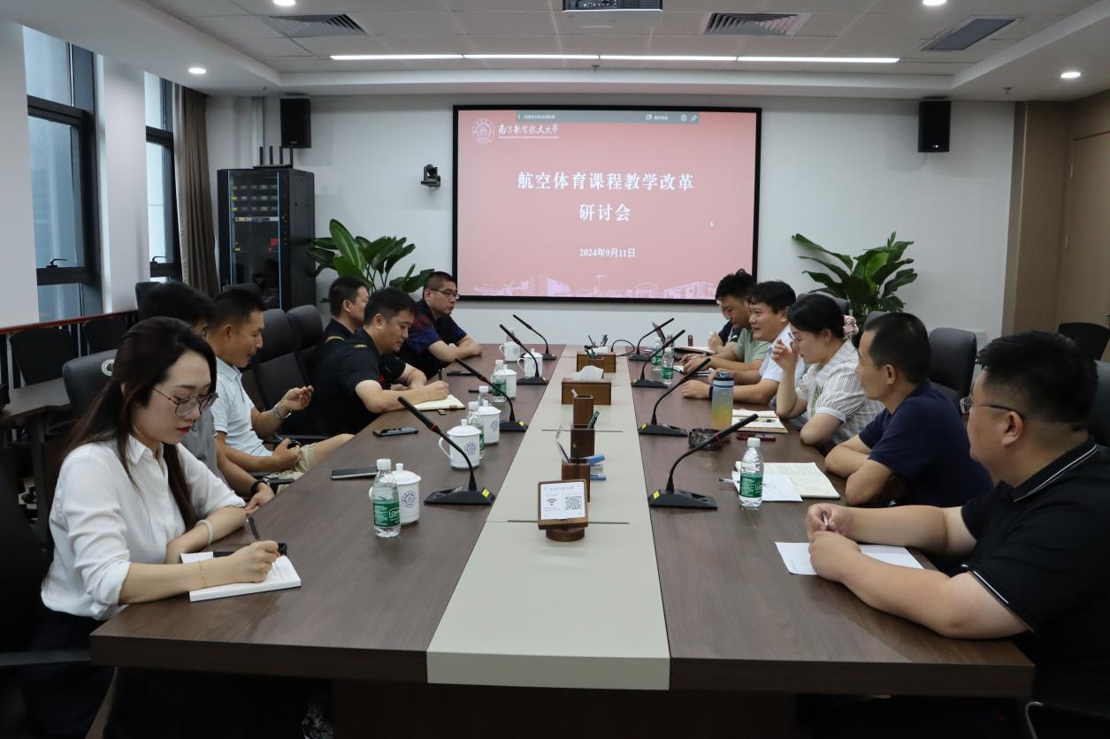 参会师生就航空体育课程的教学管理与课程改革进行了讨论,重点在人才培养方案、教学模式、特色教材建设、课程思政等方面工作进行了深入交流。